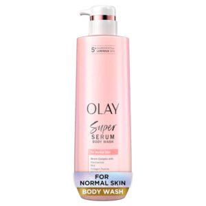 Feel the difference Olay Super Serum Body Wash can make for your skin. See and feel the difference of 5+ ingredients formulated for the Olay Super Serum Body Wash as they work to brighten, even, and firm skin for an ultra-luminous look. Hydrate your skin for 24 hours with our new body wash and experience how skin care ingredients, moisturizers, and our advanced skin-delivery technology can noticeably improve skin. This body wash for women is formulated with Olay Super Serum technology: Niacinamide, BHA, Collagen Peptide, Vitamin C, and Vitamin E. It’s dermatologist-tested and free of phthalates and silicones. Directions: Simply lather the Olay Super Serum Body Wash with a puff and rinse.