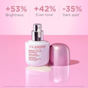 Reach a new level of bright with Bright Plus [ADVANCED] Clarins’ new brightening dark spot-targeting expert serum. This serum targets all the many facets of brightness, delivering 5 key actions in an advanced formula powered by Clarins’ latest innovation : [EVENNESS BOOSTING] TECHNOLOGY. Formulated with purple tea extract, this breakthrough technology is proven to help skin tone look more even. As Clarins has proven, when the skin tone looks more even and clear, skin is perceived as brighter. Acerola seed extract helps prevent skin yellowness while potent plant extracts combined with vitamin C derivative and niacinamide to target dullness, contribute to reduce the appearance of dark spots and blemish marks, and help to restore radiance. Skin looks visibly more even and brighter overall. Suitable for all skin types, even the most delicate.