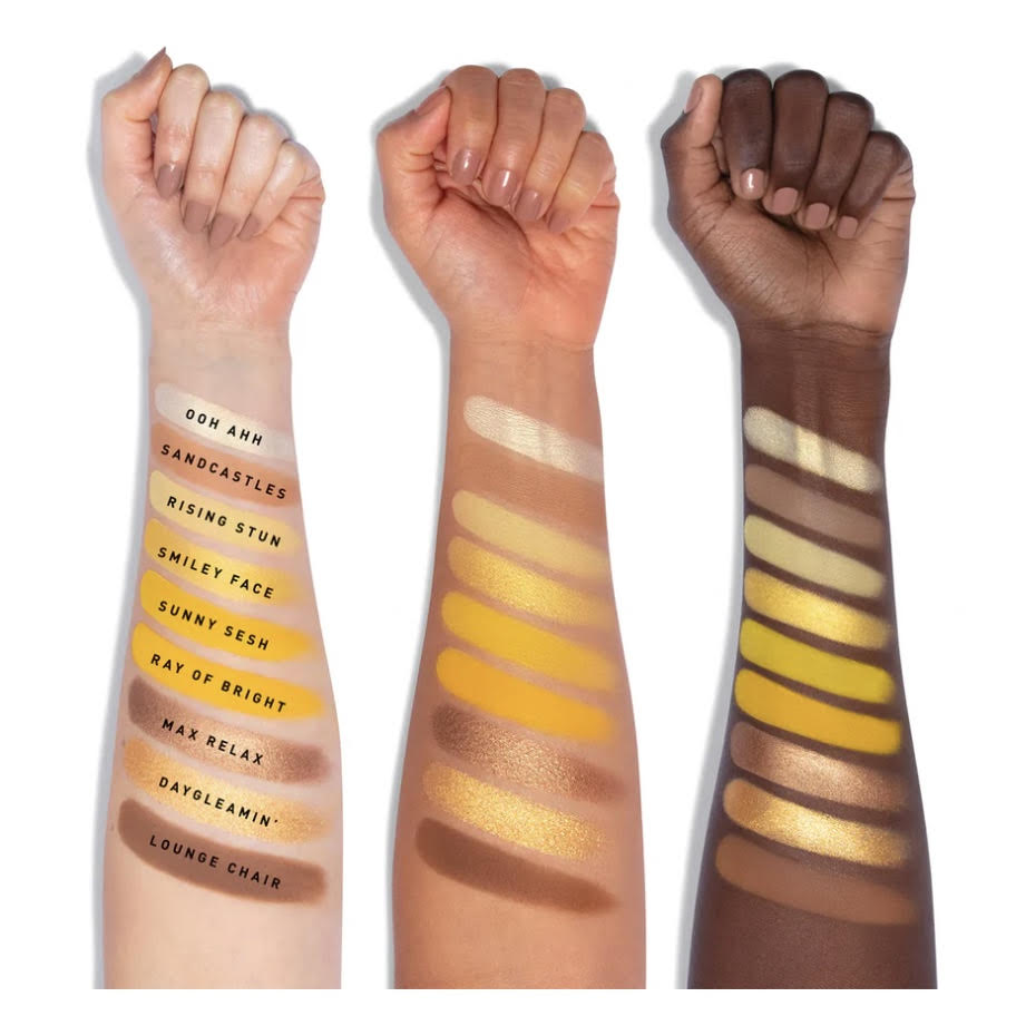 What it is: 9 SHADES THAT SWIPE BRIGHT. Grab your shades and glow, babe. This sunny palette of happy-glow-lucky hues will turn any day-and look-around.