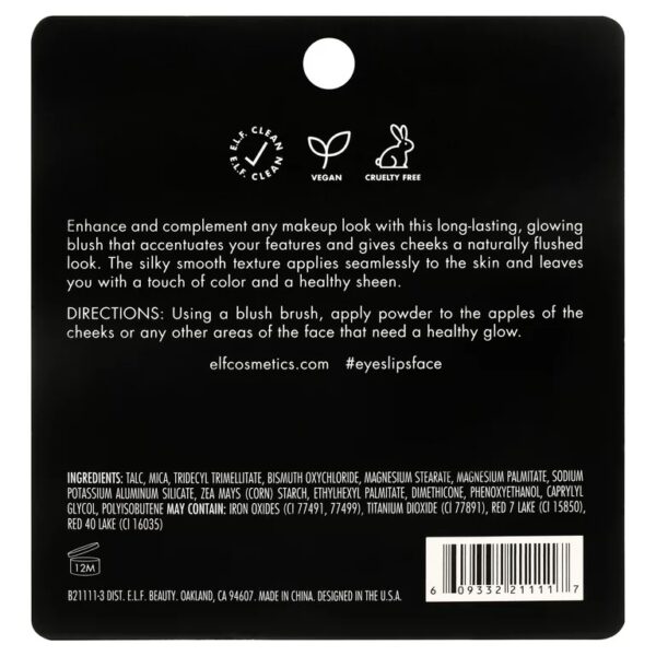 More Information: It is formulated to create lasting color that accentuates your features and flatters skin tone. Perfect for defining your cheekbones and giving your face a beautiful glow, this everyday blush will easily complement various makeup styles and blend well with other face makeup for a smooth finish.