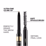More information: This brow pencil features an ultra-precise tip and a spoolie to blend the product and tame the brows . Its soft texture blends comfortably into the brows with the 1st stroke for a natural finish.