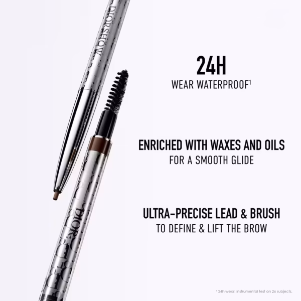 What it is: a Dior waterproof 24h* wear brow pencil with a retractable tip, to define and give fuller shape to the brow line with precision.