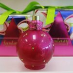 The Fantasy Eau de Parfum bottle is a stunning fuchsia pink sphere adorned with Swarovski crystals, reflecting the magical and dreamy essence of the scent. The elegant golden detailing and whimsical design add a touch of glamour to the perfume’s aesthetic.