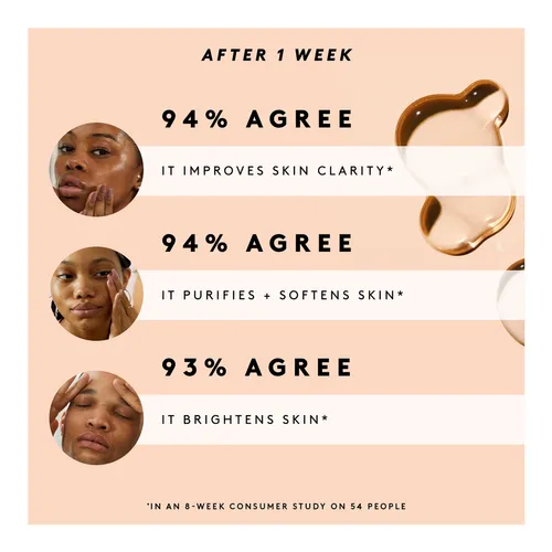 More information: Use for a fast, fat splash of water that tightens the look of pores, brightens, and smooths skin. This treatment is made with Niacinamide to target spores and help visibly even skin tone. Features a light scent of sweet Cherry and sun -kissed Fig.