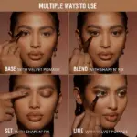 -Lift, fill, line, shape, sculpt, and set your eyes, brows, face, and lips with a brush or finger application.