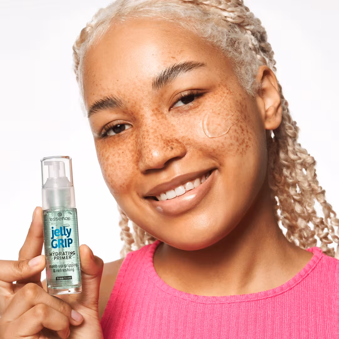 Essence Jelly Grip Hydrating Primer Creates the ideal makeup base. This unique jelly primer hydrates and ensures a strong makeup grip, offering long-lasting effects. Jelly Grip provides dual benefits-hydration and extended makeup wear.