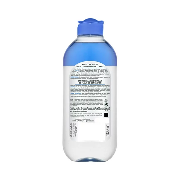 - Garnier micellar water and makeup remover cleanses, removes makeup and refreshes skin