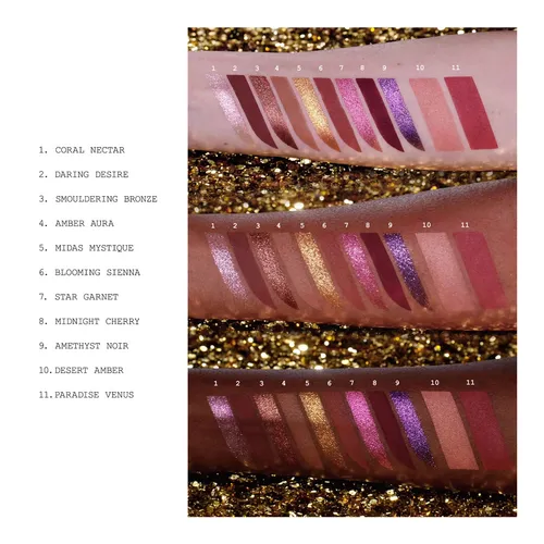 What it is: A majestic fusion of 9 eye shadows and 2 blushes in 1 multi-use palette.This pigmented kit boasts nine multidimensional eyeshadows and two blushes set to add a rush of colour to your cheeks.
