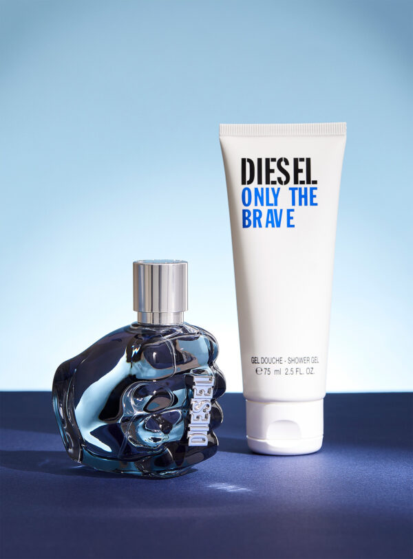 The Only The Brave bottle is designed in the shape of a clenched fist, symbolizing power and determination. The sleek glass with metallic accents represents Diesel’s bold and modern aesthetic.