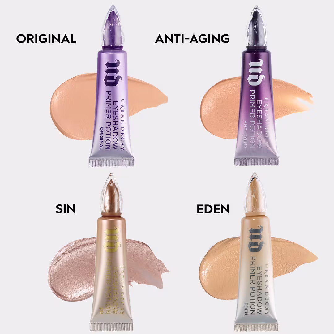 • Smooth on just a touch of Eye Shadow Primer Potion before your eyeshadow for 24 hours of long-lasting wear and NO creasing. You can also wear alone for a subtle neutral eye makeup look. • Pro tip: Can also serve as shadows or highlighters!