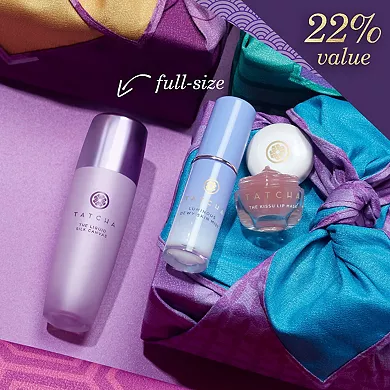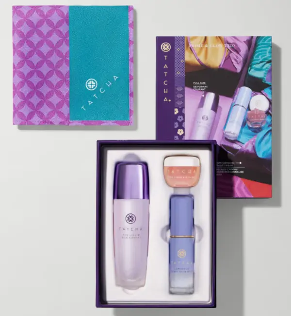 The Tatcha Prime and Glow Trio Set is the ultimate skincare trio to prep, hydrate, and add a luminous glow to your complexion. This luxurious set includes three of Tatcha’s bestselling products: Luminous Dewy Skin Mist, The Liquid Silk Canvas, and The Kissu Lip Mask. These products work together to give your skin a smooth, radiant base while keeping your lips soft and hydrated. Perfect for both everyday use and special occasions, this set delivers a glowing, flawless complexion.