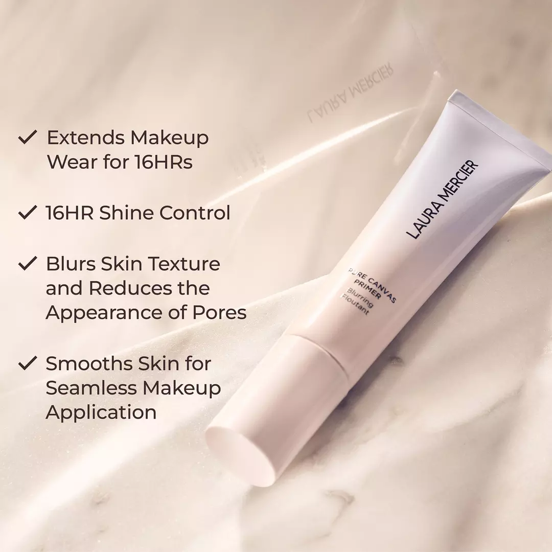 What it is: Laura Mercier’s Pure Canvas Primer Blurring smoothes skin for even makeup application and visibly reduces the appearance of pores instantly and over time.