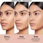 More information: Formulated with innovative micro spherical powders, this multipurpose primer visibly blurs imperfections, minimizes pores and fine lines, and absorbs excess oil for a near-instant skin-perfecting finish. The weightless, translucent gel formula enhances the application, look, and wear of makeup.