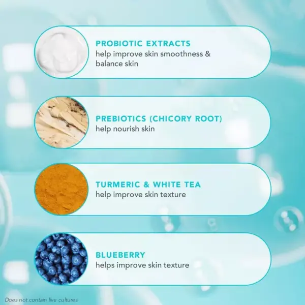 What it is: A gel-based cleanser infused with probiotic extracts, turmeric, white tea, and blueberry that purifies skin as it removes dirt, oil, impurities, and makeup.
