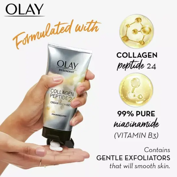 What it is: Olay’s Regenerist Collagen Peptide 24 Cream Cleanser gently exfoliates your skin, leaving it prepped skin for Collagen Peptide 24 products.
