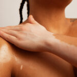 After bathing, place 3 drops of body oil into the palm of your hand. After rubbing hands together to warm the moisturizing oil, gently massage onto skin in sweeping upward motions. Give special care to areas that need extra love and hydration, like elbows, heels and knees.