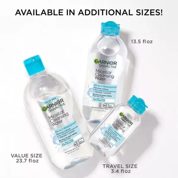 What it is: Garnier SkinActive Waterproof Micellar Cleansing Water gently cleanses skin, refreshes skin and removes waterproof and long-wear makeup all in 1 step.
