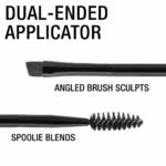 Apply Maybelline’s eyebrow pomade like a makeup pro. Step 1. Use the angled sculpting brush for outlining your ideal brow shape, seamlessly fill in your brows, and build coverage for added definition. Step 2. Use the spoolie to blend the formula for a natural finish.
