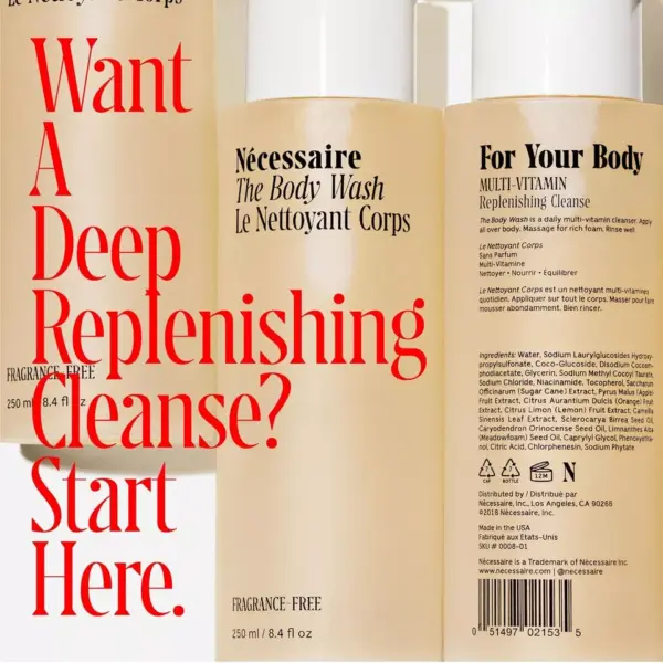 More Information: The Body Wash is a daily oil-in-gel cleanse for skin. Infused with facial-grade Cacay-, Marula- and Meadowfoam oils rich in Vitamin A/C/E + Omega 6/9 and Niacinamide, The Body Wash is made to nourish, soften and balance skin. Gentle Plant Surfactants provide a luxe, soft lather.