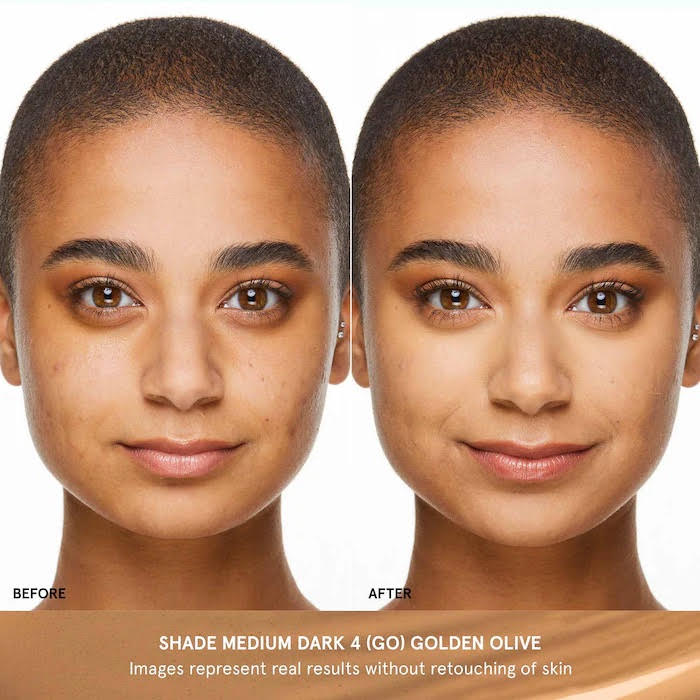 What it is: A buildable, creamy formula that can flex from medium to full coverage while it visibly brightens and conceals, is fragrance-free, long-wearing, crease-proof, and made to move with you.