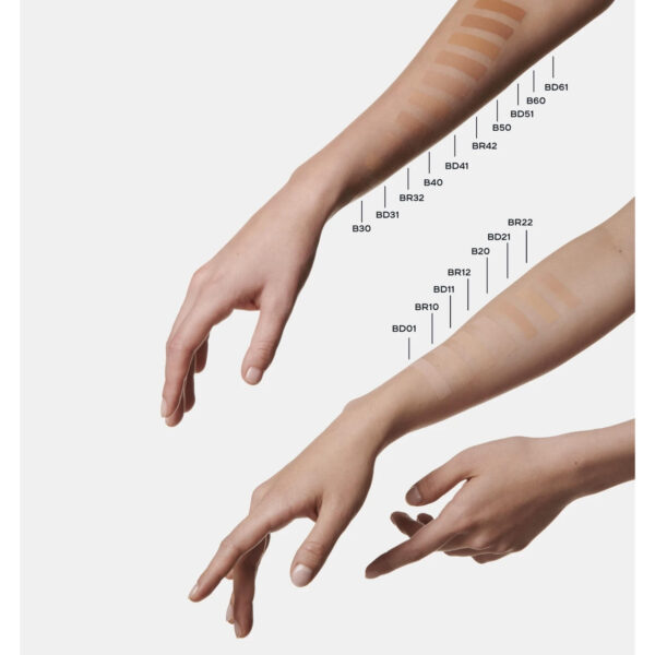 The formula provides long-lasting performance without compromising the health of the skin. The weightless and breathable formula melts into the skin without weighing it down.