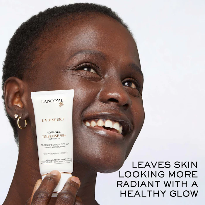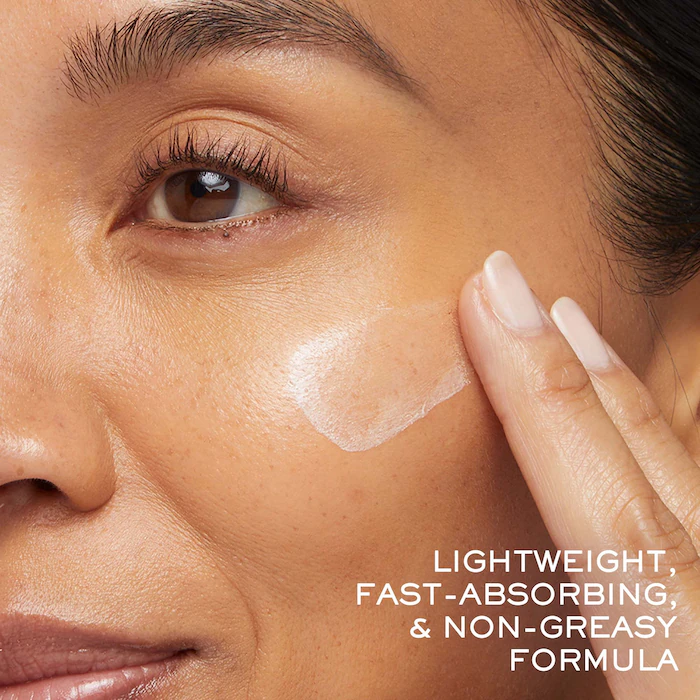 What it is: A lightweight moisturizer with SPF 50 that hydrates, primes, and protects with an invisible finish—for healthy-looking, visibly glowing skin.