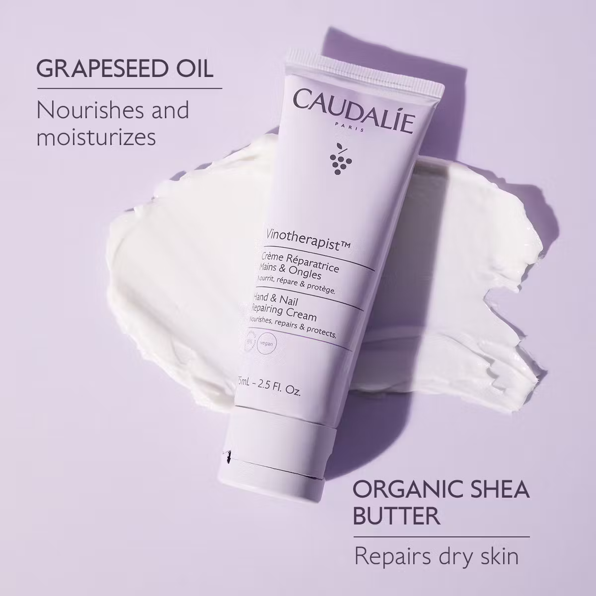 More Information: The Vinotherapist Hand & Nail Repairing Cream is enriched with shea butter and an avocado oil and olive oil lipidic duo, specially chosen to relieve skin discomfort and prevent dehydration.