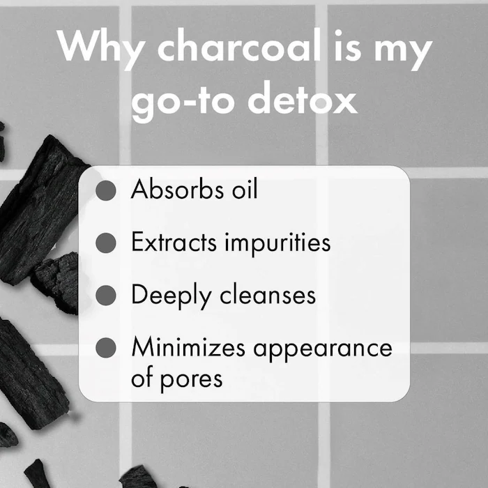 -Charcoal: Absorbs oil and residue from pores for visibly refined and purified skin.